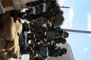 Master Sgt. Ivan Candelario, 916th Civil Engineers, works with a team of Seymour Johnson Airmen on post-reconnaisance attack procedures during the wing's Operational Readiness Exercise this week in Savannah. (USAF photo by TSgt. Scotty Sweatt, 916ARW/PA)