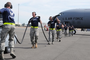 Staff Sgt. Stephen Green, 916th Security Forces Squadron, departs the bus at McChord Air Force Base, Wash. bound for Air Mobility Command's RODEO competition. Members of the 916th Air Refueling Wing are participating this week in flying operations, maintenance and security forces exercises. A recent