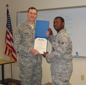 "I call her Sergeant Mom," chuckled the fresh-faced 20-year-old in battle dress uniform. Master Sgt. Susan Pate takes the ribbing in stride, knowing it is actually a name, and a voice, she loves to hear. The 20-year-old is her son, Andy, or rather Senior Airman Andy Pate and the nickname is